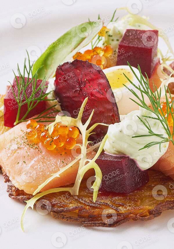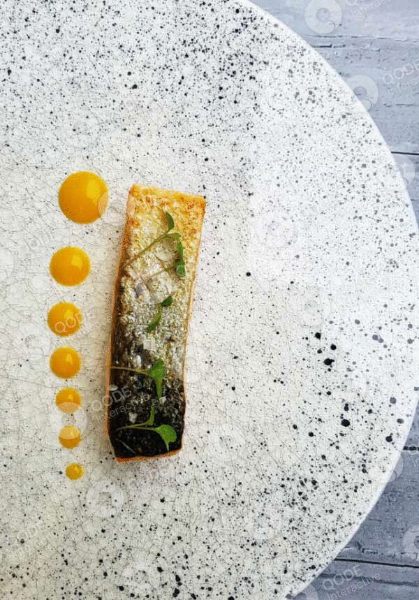 Black Angus beef tongue baked in Josper oven with porcini mashroom ragu , eggplant hummus and horseradish sauce