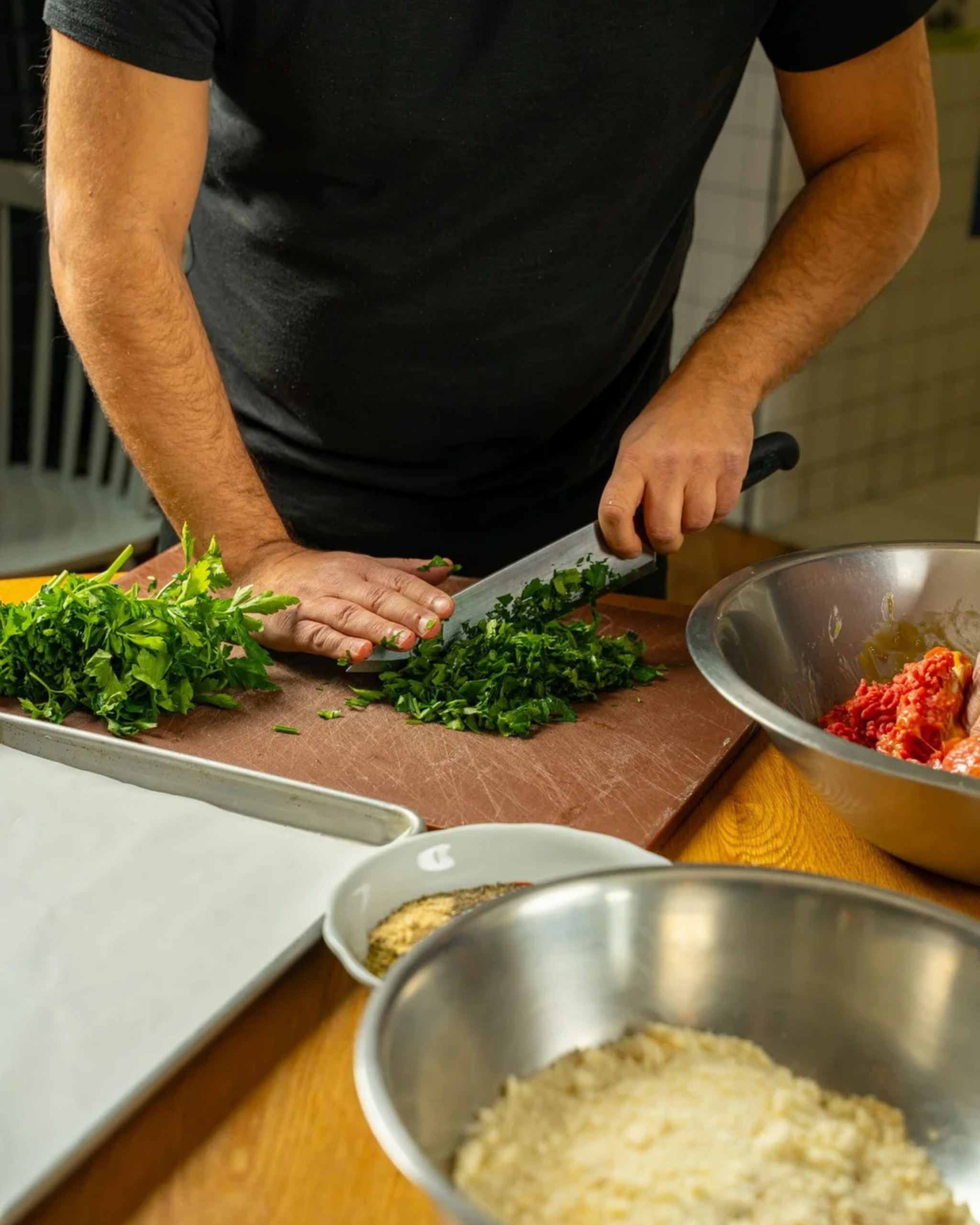 Black Angus beef tongue baked in Josper oven with porcini mashroom ragu , eggplant hummus and horseradish sauce